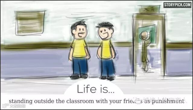 和好朋友在教室外面一起罚站