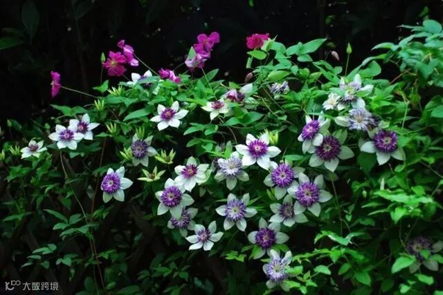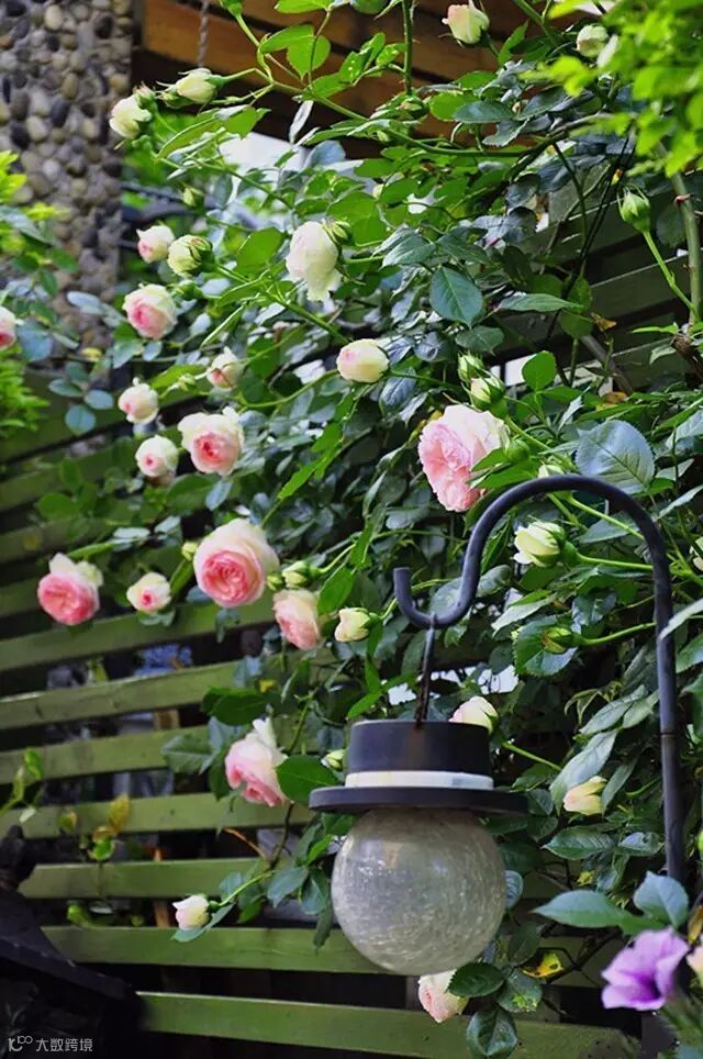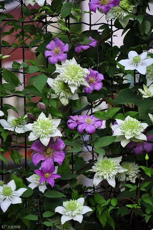 如果问什么和藤本月季最般配,答案一定是铁线莲,一个娇媚不失锋芒,一个硬朗不失妖娆,藤蔓缠绕一起,可谓相得益彰。