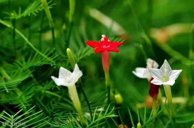 相比而言,一年生的茑萝小巧精致,藤蔓缠绕蜿蜒,非常适合种在阳台或窗台上。茑萝的样子看起来纤弱,却十分顽强,而且种一次之后,即使忘记播种,遗落下来的种子第二年自己也会从花盆里冒出芽来。