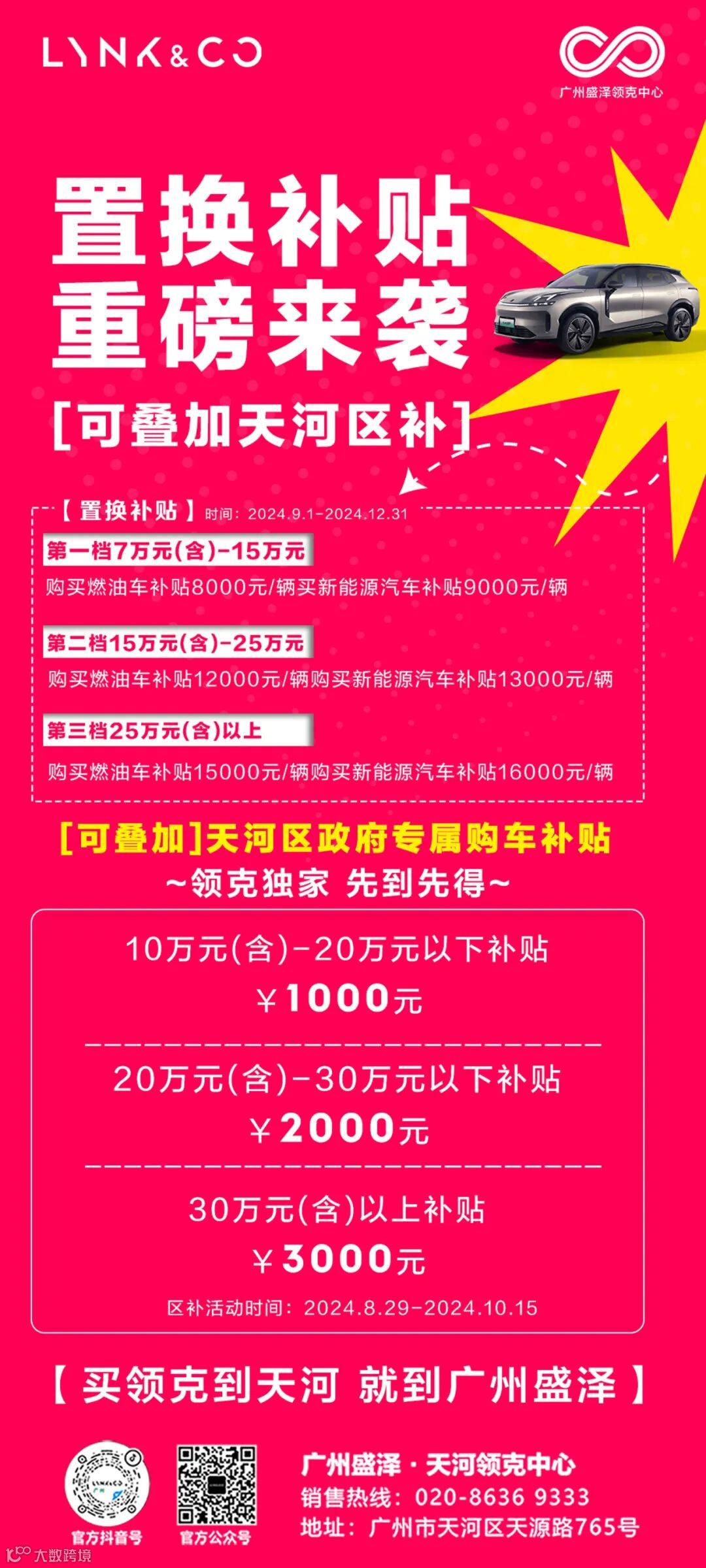 3、所购车辆必须是新车。发票开具日期需在2024年8月28日—9月30日;车辆行驶证发证日期需在2024年8月28日—10月15日。最迟要在2024年10月15日18:00之前办理完成并上传材料,逾期将不予补贴。