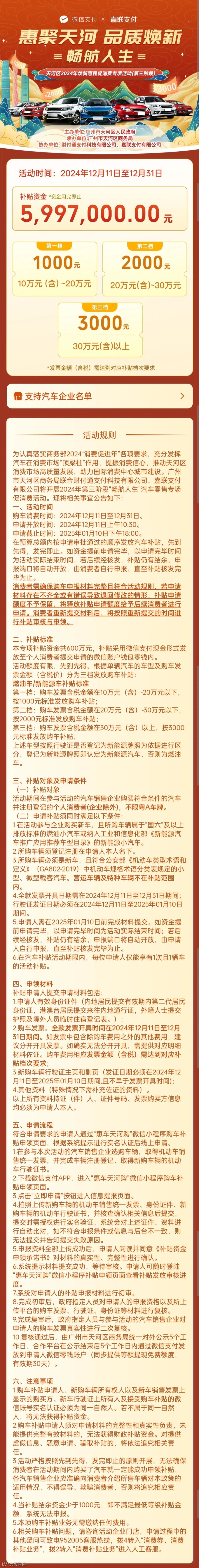 购车补贴至高3000元