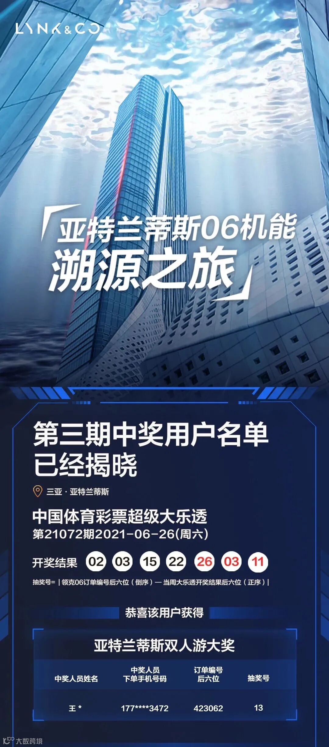 亚特兰蒂斯06机能溯源之旅第三期中奖用户揭晓! 广州盛泽领克中心