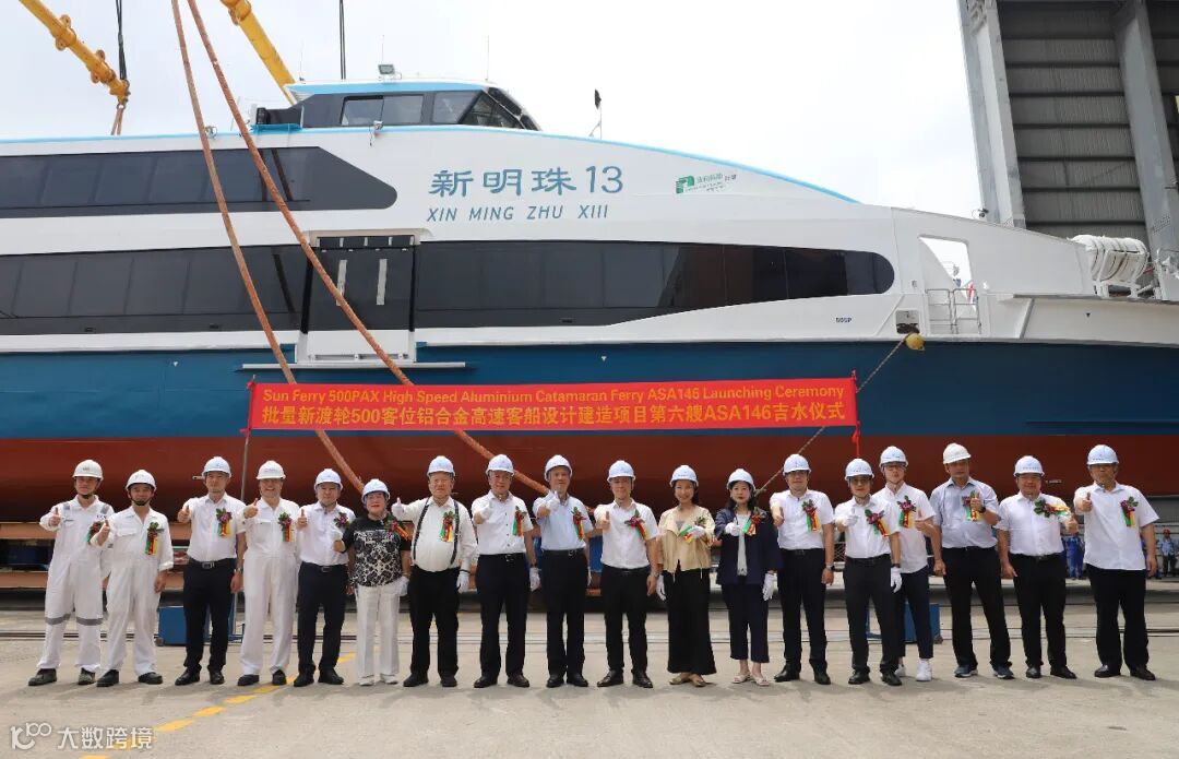 2025年7月30日,英辉南方造船为新渡轮服务有限公司建造的批量客船新渡轮500客位铝合金高速客船“新明珠13”船顺利吉水。新渡轮服务有限公司董事长黄烈彰,中国船舶集团广州船舶工业有限公司(中国船舶集团第六〇五研究院)党委书记、董事长兼第六〇五研究院院长区广权,中国船级社广州分社入级检验处副处长朱功泉,英辉南方造船总经理陈晓亮出席仪式。
