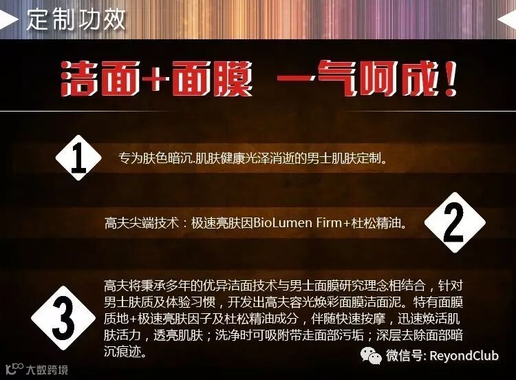 高夫秉承多年的优异洁面技术与男士面膜研究理念相结合,针对男士肤质及体验习惯,开发出高夫容光焕采面膜洁面泥。