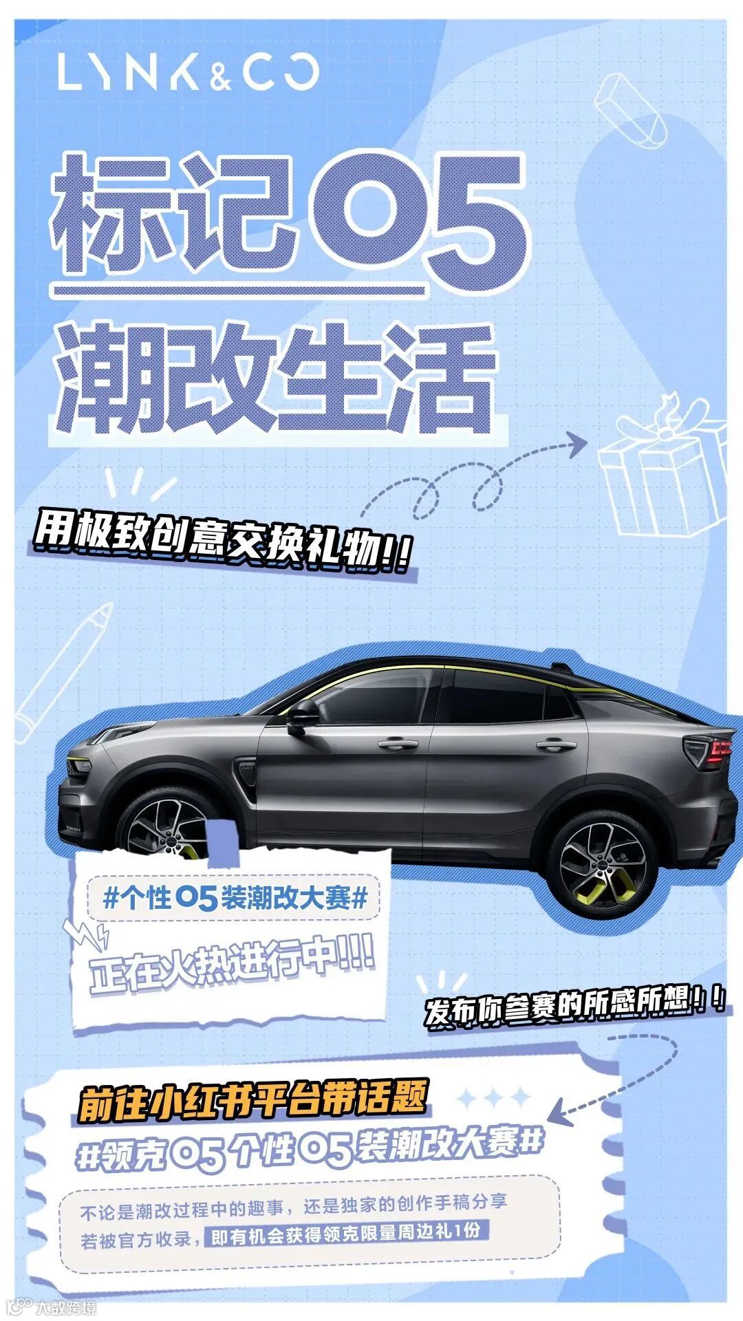 导读:个性05装潮改大赛 火热进行中!用创意发光,用灵感落笔前往小红书平台带话题#领克05个性05装潮改大赛 标记潮改生活,即有可能获得#领克05 限量周边礼!