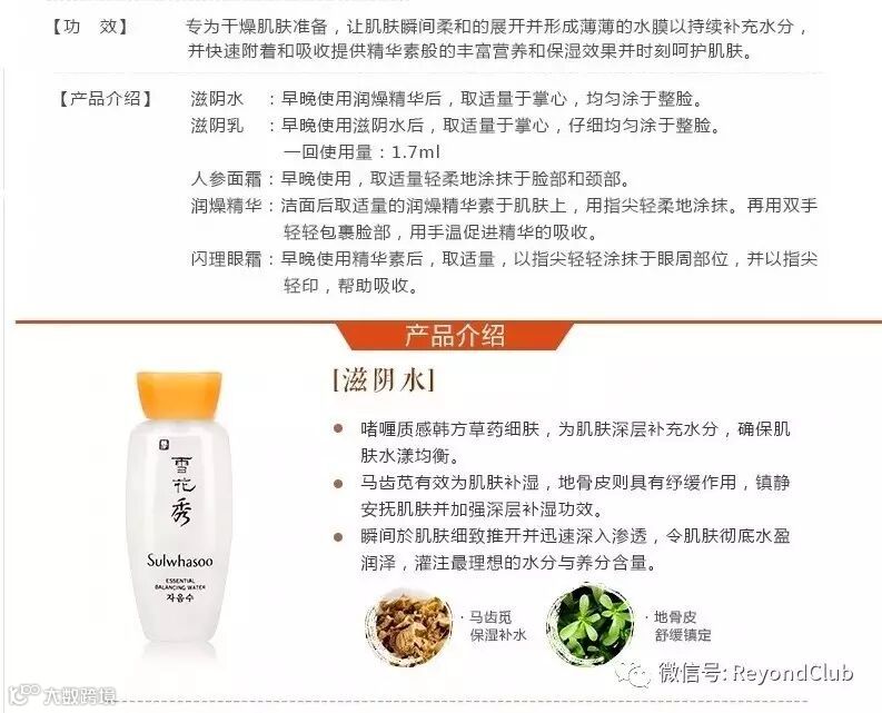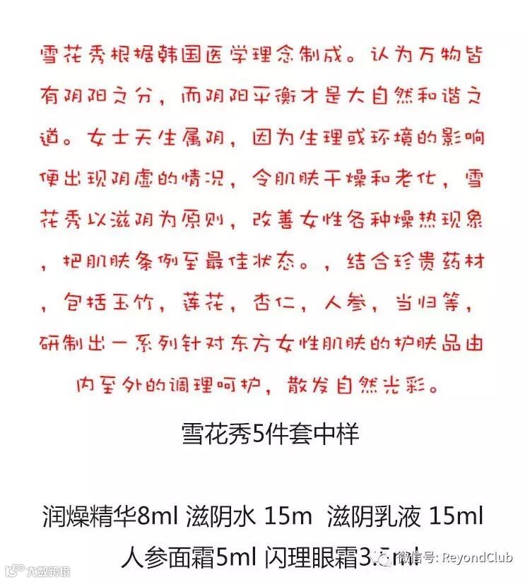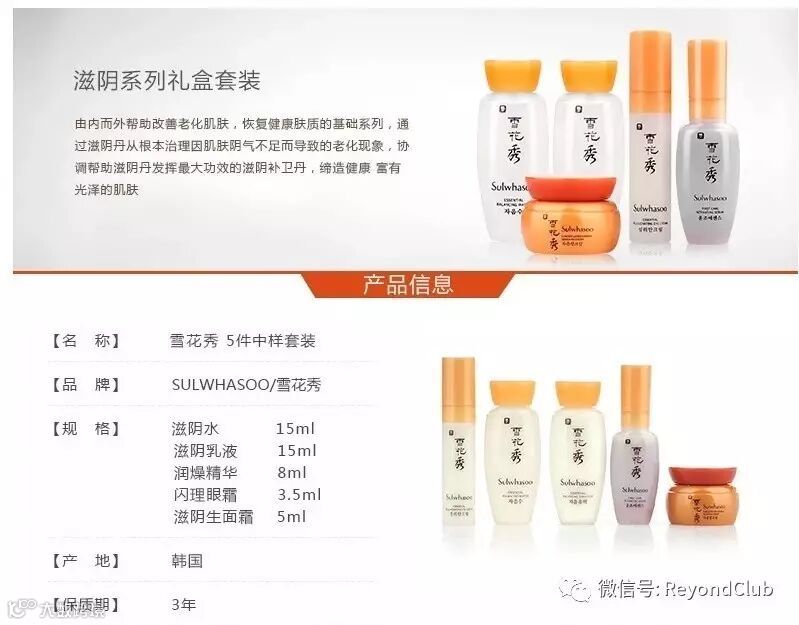 出门旅行就选中小样!雪花秀滋阴水乳#五件套中样套装 滋阴水+乳+润燥精华+闪理眼霜+人参面霜容量:15ml+15ml+8ml+5ml+3.5ml 非常超值的中样套装,专为干燥肌肤准备,让肌肤瞬间水润,持续给予滋润。增强皮肤免疫能力,愈合修复能力皮肤抗老化,加强肌肤营养从肌肤根本调理肌肤。