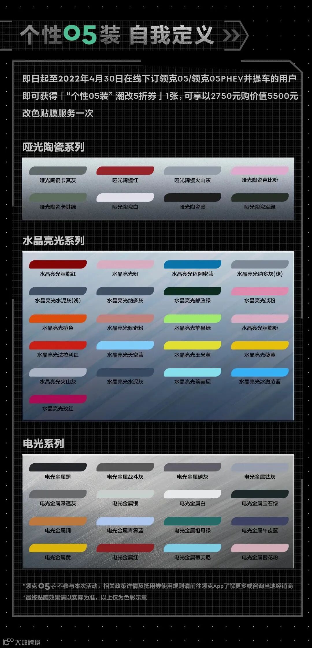 45种色彩选择,让05大不一样! 广州盛泽领克中心