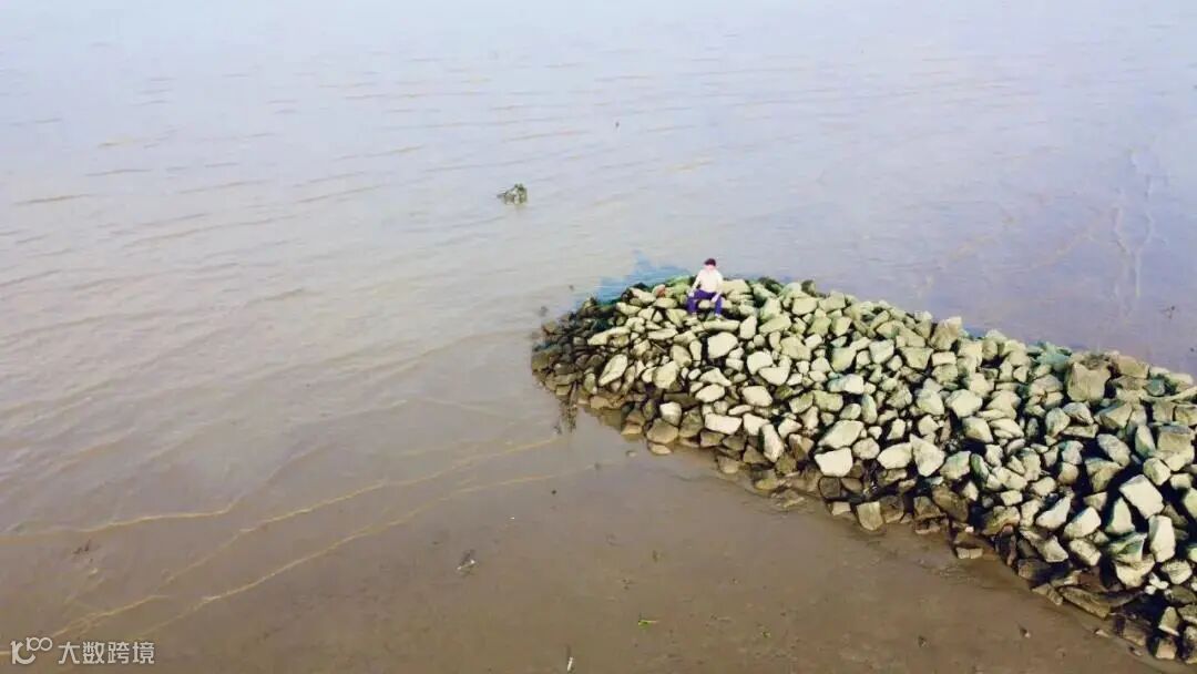 可以看到一条石路延伸到江里