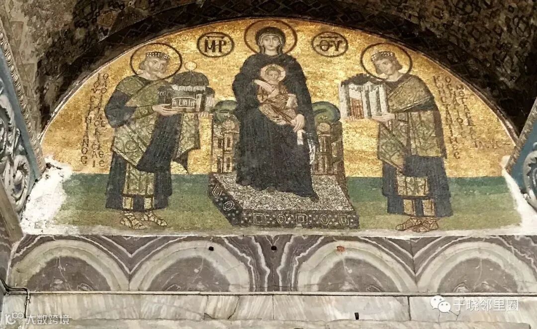 (左查士丁尼献教堂,右君士坦丁献城堡)