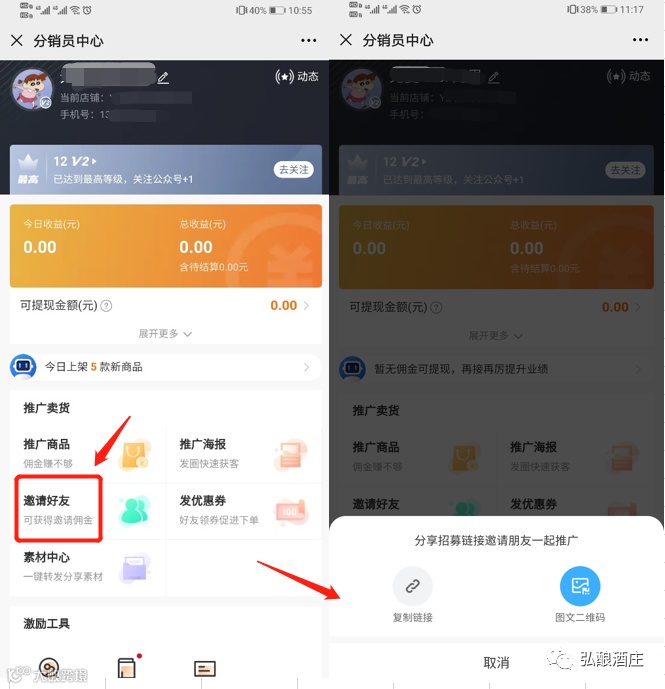分销员退出店铺后,邀请关系也会清退。