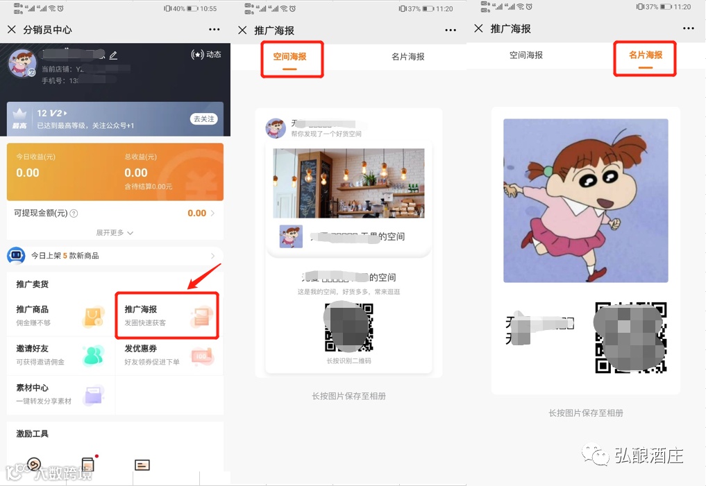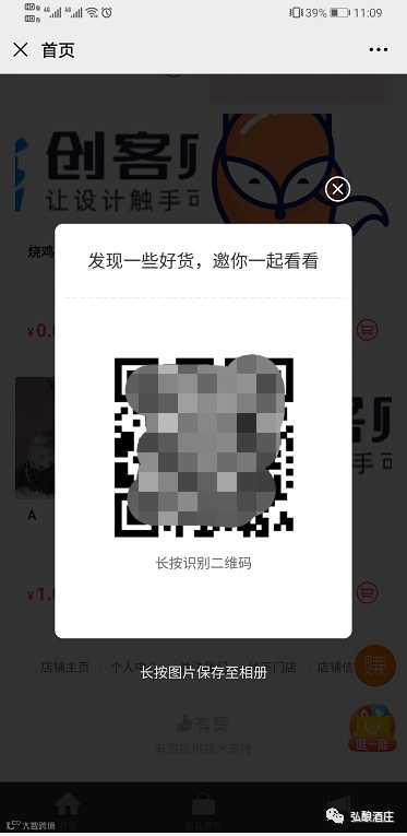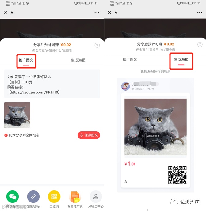 店铺端:分销员可点击“[赚]-图文二维码 "生成一张店铺图文二维码,并将该图文二维码分享即可