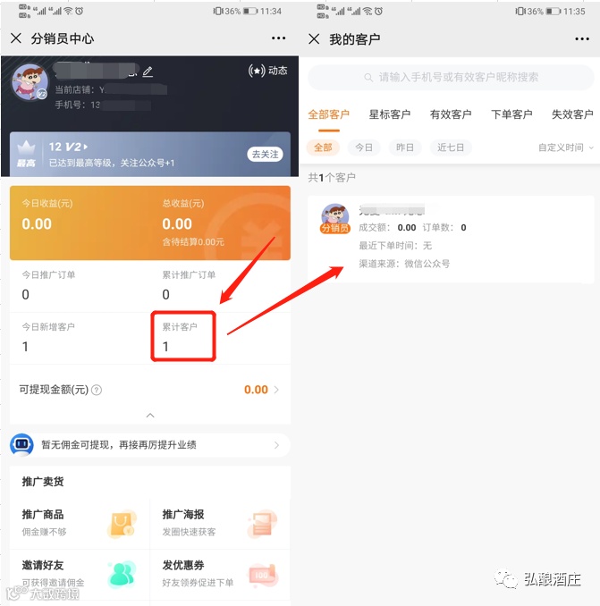 星标客户:针对经常购买的客户,分销员可以将其设置为星标客户,方便进行分销员维护。