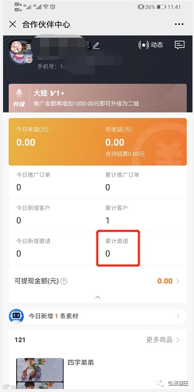 被邀请人产生业绩后,邀请人可享受邀请奖励,点击“可提现佣金”或“结算中心”-收支明细进行查看。