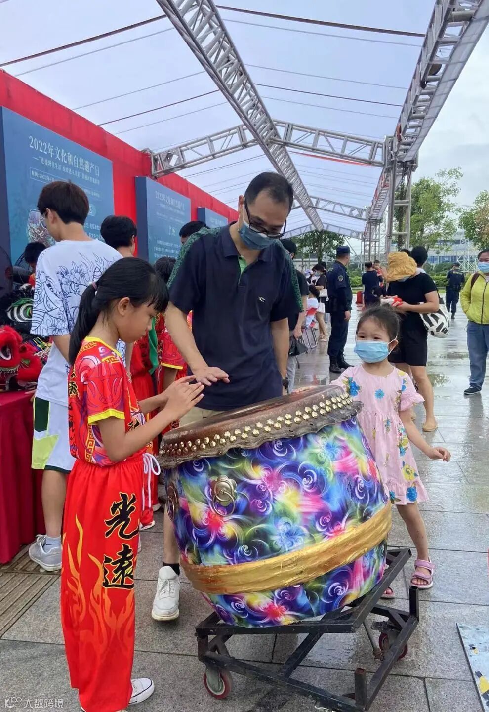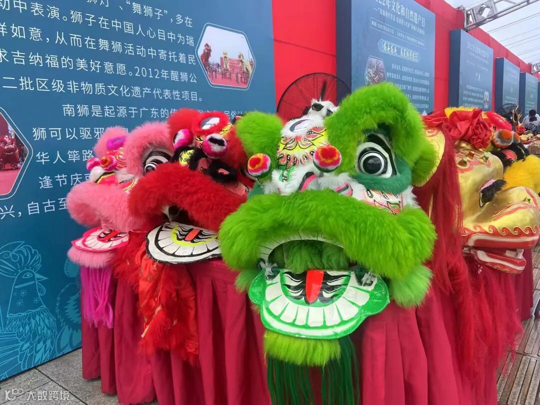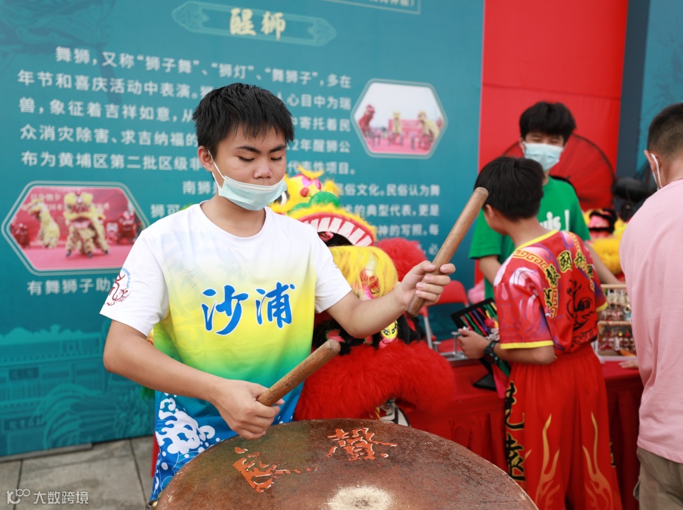 醒狮的展位也是人头涌涌,展示的狮头气势十足,游客争相和狮头合照留念。醒狮队的小朋友们也充满干劲,无论是击鼓还是舞狮,现场表现都威风凛凛,赢得了不少喝彩和掌声。