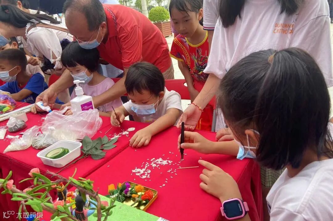 对于很多游客来说,都是第一次体验乞巧手艺,甚至在此之前,只在电视上看到过这项工艺。用米做花、用丝网做金鱼......大家都极有耐心地跟着老师的教导制作。