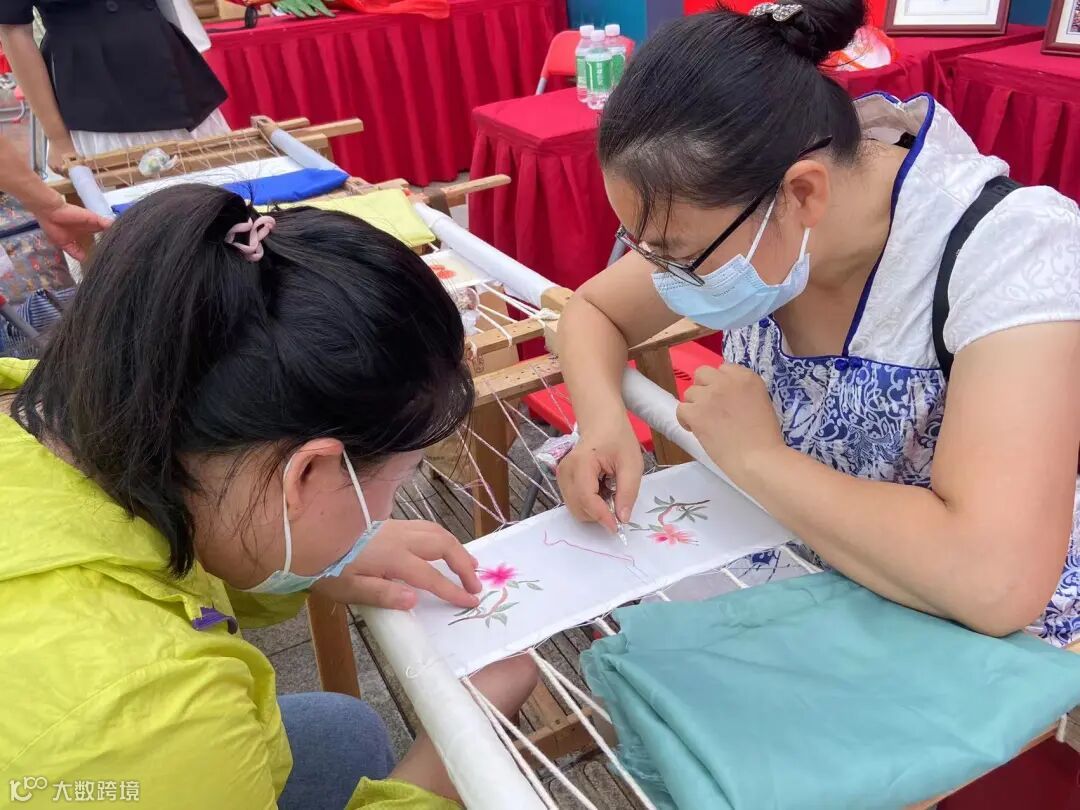 可能很多人觉得,广绣是女孩子才会的手艺,但是在现场广绣的展位也迎来了不少男孩子体验,细心程度也毫不逊色呢!