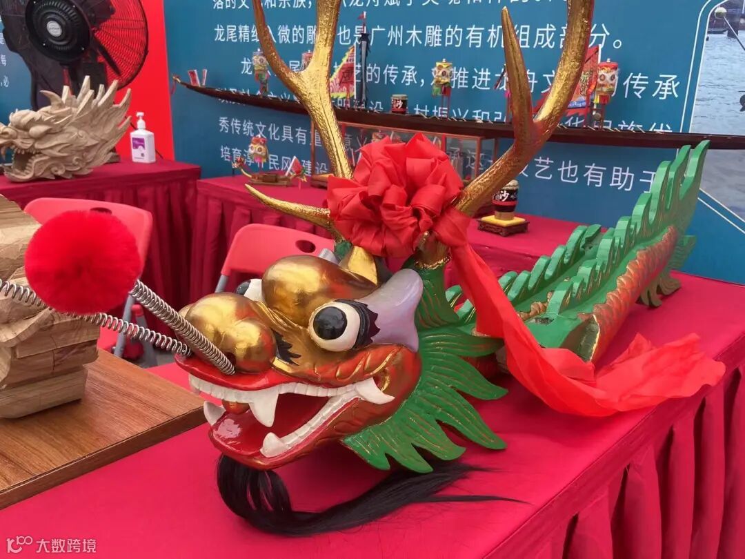 这项传统的雕刻龙舟龙头工艺,可是出现在了今年冬奥会开幕式上的!展位上邀请到的广州市黄埔区非物质文化遗产项目“龙舟龙头、龙尾制作技艺”传承人张伟潮老师,就是冬奥会开幕式上出现的龙舟龙头的制作者。
