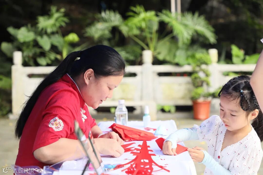 剪纸看上去简单,但要剪出具有传统非遗特色的作品,可是需要不少功夫,现场游客在非遗老师的指导下,学会了不少技巧。