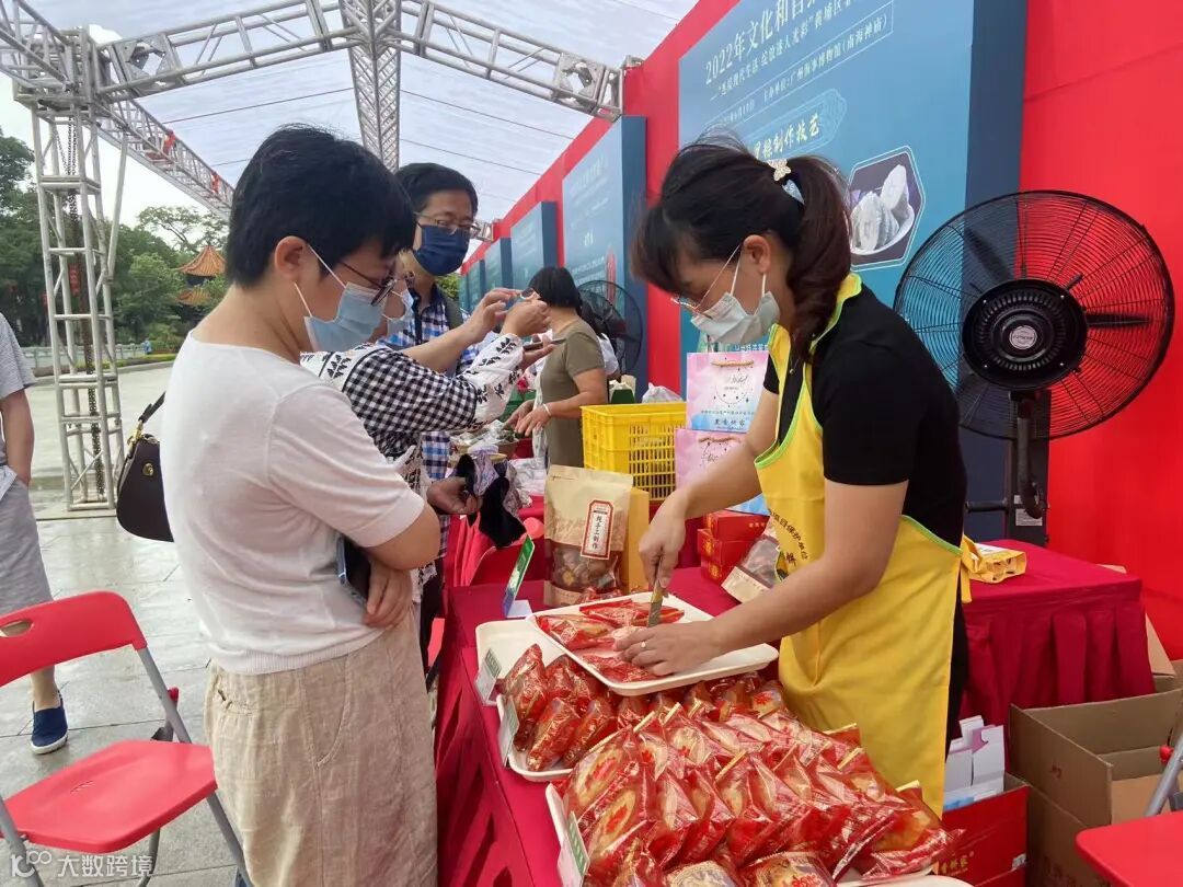 除了能亲自体验非遗工艺之外,玉岩书院现场还展示了传统的鸡公榄,让游客品尝。