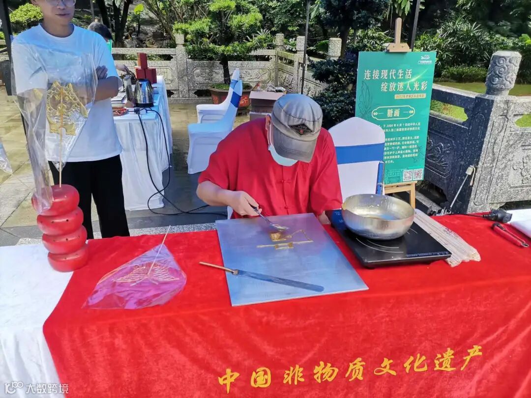 糖画的展位从活动开始就围满了游客,大家一边观赏老师的作品,一边学着亲自制作糖画,大人和小孩都欲罢不能。又好看又好吃的非遗文化谁能不爱?