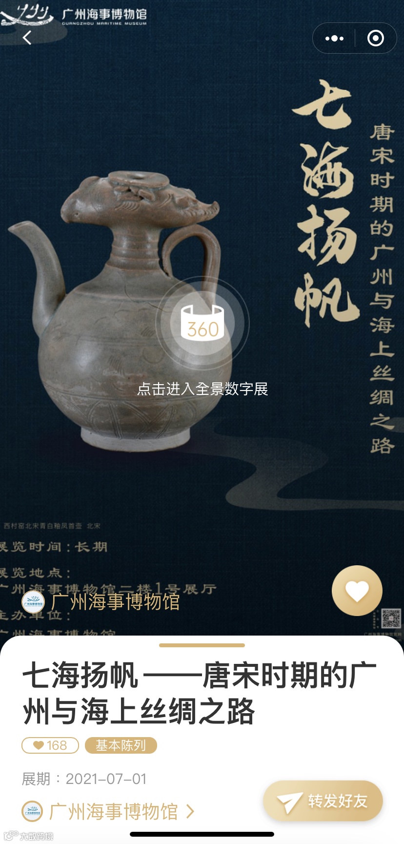 本届“十大陈列展览精品”初评公布申报项目共有157个,其中广州海事博物馆申报的“七海扬帆——唐宋时期的广州与海上丝绸之路”展览也成功入围。