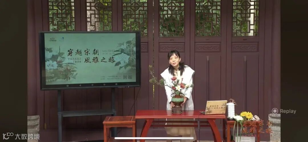 2022年12月13日上午,花艺高级讲师周谊老师应邀莅临玉岩书院,通过线上直播的方式,为广大市民朋友带来了一场主题为《宋韵花香》的讲座,带领大家感受宋人的审美意趣和风雅情韵,领略千年宋韵文化的独特魅力。