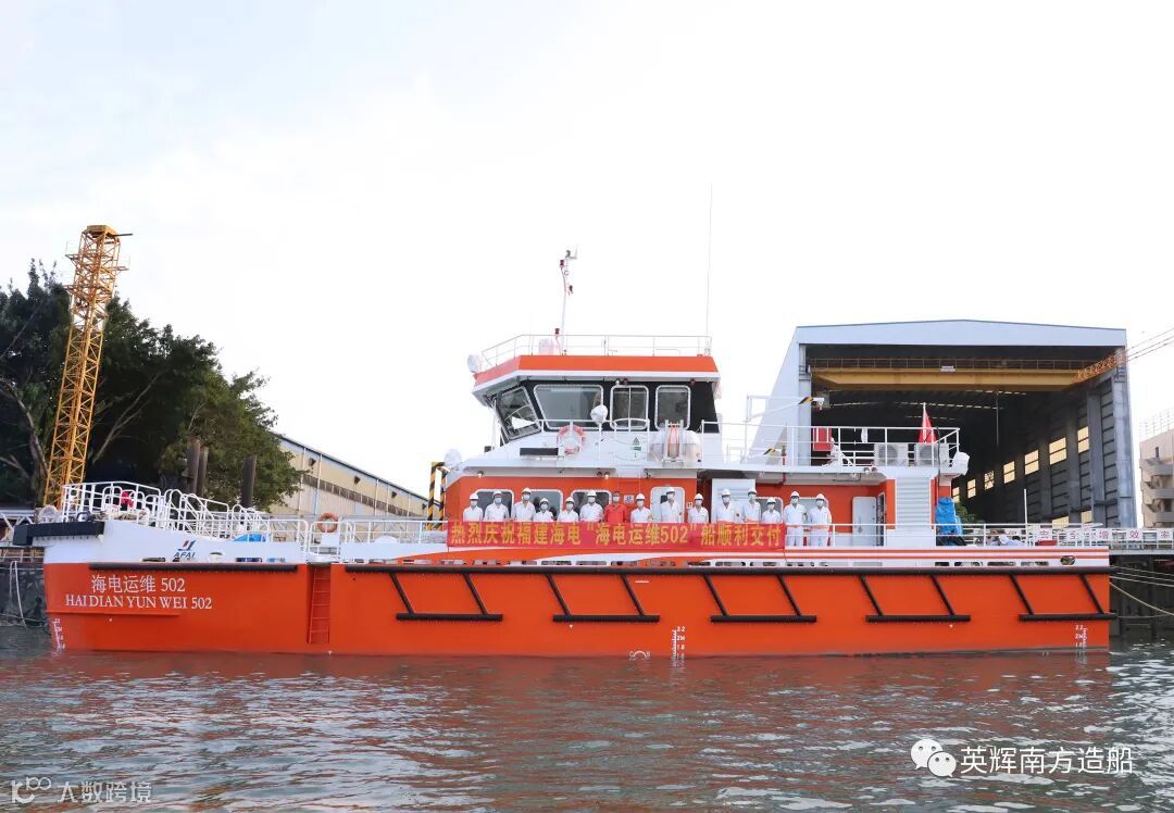 “海电运维502”今天成功交付,未来在运营服务当中,英辉南方将会持续密切关注解船舶运行状况,认真吸取客户在使用中的反馈意见,将以快速的响应,专业的售后服务团队,为客户提供第一时间全寿命周期的保障服务。