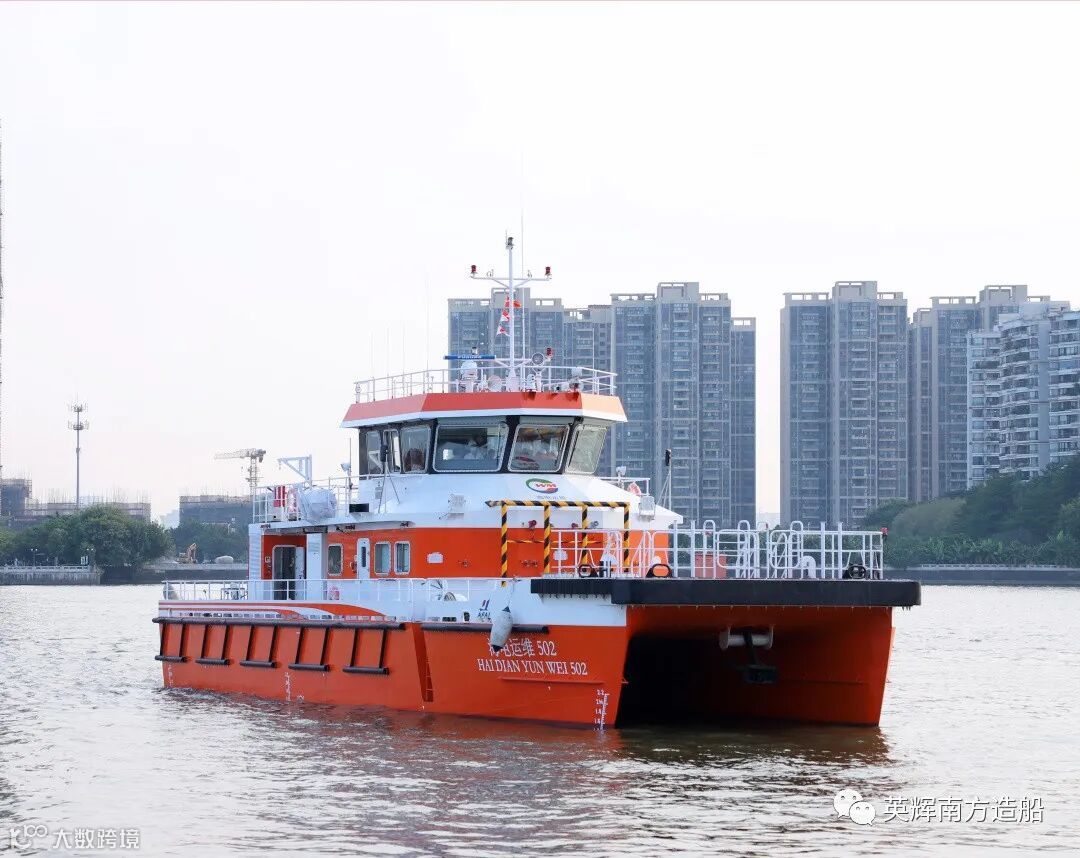 该船船东福建海电运维科技有限责任公司是国内走在最前端最具专业的风电运维公司之一,对专业风电运维船舶需求极为紧迫,对船舶建造周期要求极其严格。在船东的要求下,英辉南方保质保量,相较于合同期提前1个月完成交付,助力船东在繁忙的风电运维市场中赢得时间。英辉南方在铝合金船舶的高建造质量、精湛建造工艺以及高效精细的周期管控方面,再次赢得船东高度评价和十分满意的肯定。