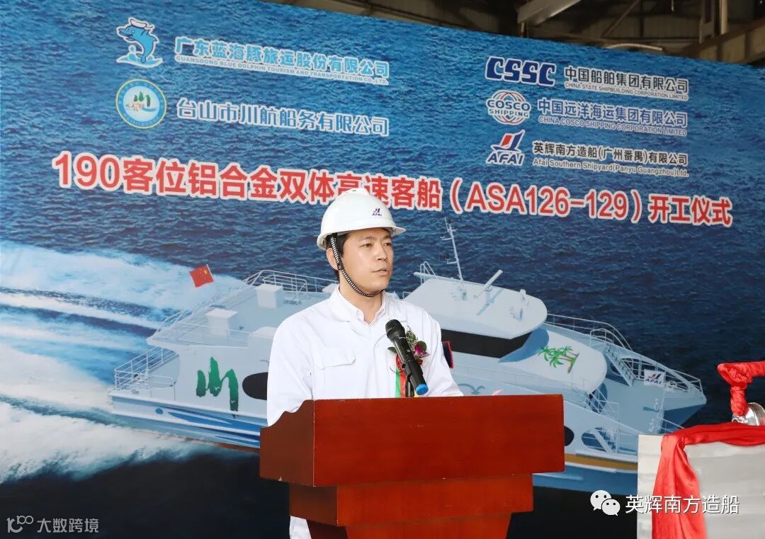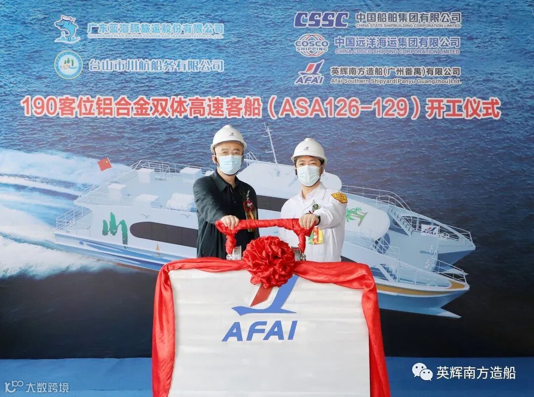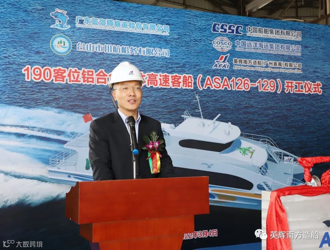 2022年3月4日, 英辉南方为广东省港航集团有限公司下属广东蓝海豚旅运股份有限公司旗下台山市川航船务有限公司设计建造的4艘190客位铝合金双体高速客船举行开工仪式。广东蓝海豚旅运股份有限公司党委副书记、总经理陈宇,党委委员、副总经理(兼任川航船务总经理)段晖,台山市川航船务有限公司副总经理魏勇强,中国船级社广州分社入级检验处处长黎庆芬、经理李绍波等领导嘉宾及英辉南方总经理陈晓亮等领导班子成员出席仪式。