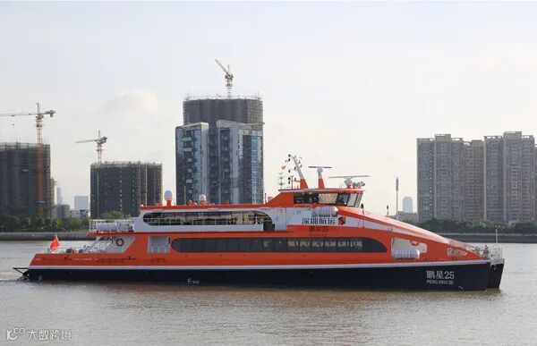 “鹏星25”船长40.18米,宽9米,设计载客199人。本次试航通过了从航速测定、停船试验到回转试验等一系列的实操考验,船舶动力系统的可靠性和稳定性得到全面充分的检测和验证。船舶总体性能获得了船东和船检的一致好评。