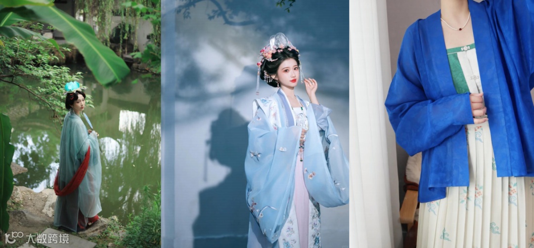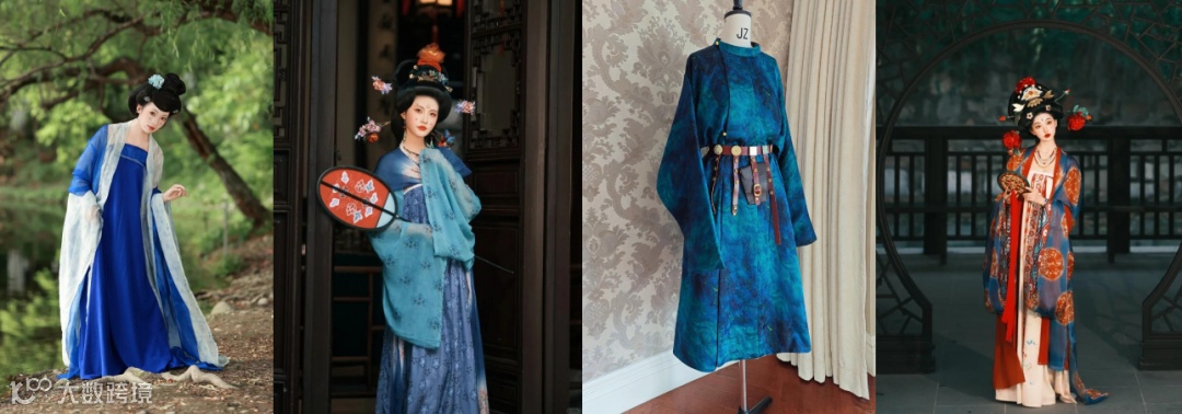 我们特别推荐唐制或宋制的蓝色系汉服。唐代作为海上贸易繁荣期,其齐胸襦裙与圆领袍的包容气象,与航海文化的开放特质高度契合:而宋代海上贸易规模空前,其简约雅致的褙子与长衫,则更呼应了航海技术中蕴含的理性智慧。身着不同深浅的蓝色服饰——从象征近海的绕色到寓意深海的青碧--您将成为展览叙事的一部分。