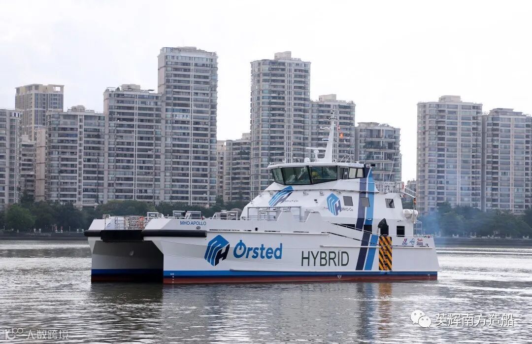 2021年5月21日,英辉南方承建的高性能混合动力风电运维船MHO APOLLO(ASA103)顺利完成试航。