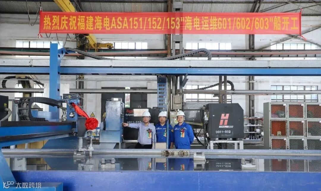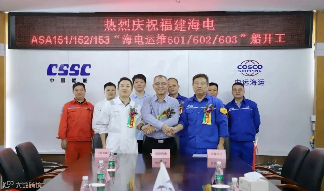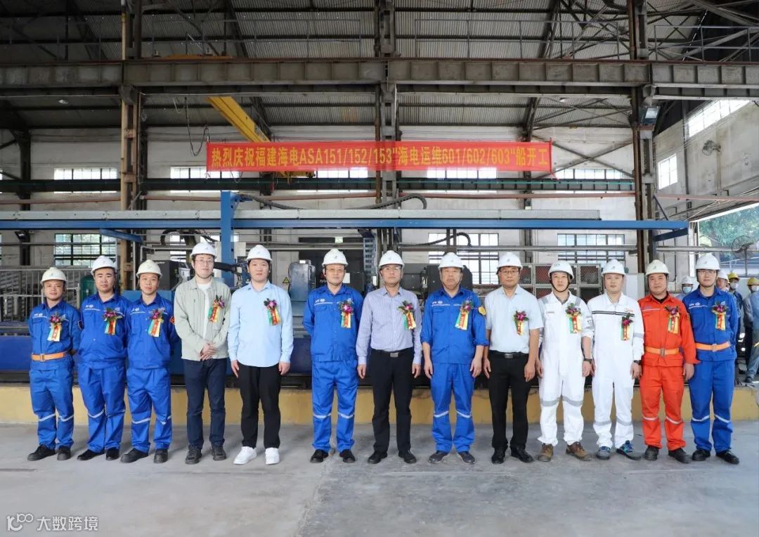 2023年11月28日,英辉南方承建的福建海电运维科技股份有限公司三艘36米海上风电运维船顺利开工。福建海电运维科技股份有限公司副总经理巫占钟,广州船舶及海洋工程设计研究院院长助理孙铁锐,英辉南方副总经理刘勇出席仪式。