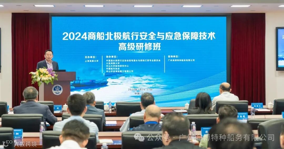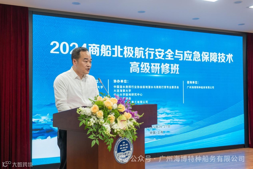 5月26-27日,由上海海事大学与中国潜水救捞行业协会极地潜水与救助打捞专业委员会、大连海事大学、中山大学极地研究中心、中国船东协会、舟山中远海运重工有限公司联合举办的“2024商船北极航行安全与应急保障技术高级研修班”在上海海事大学继续教育学院举行。交通运输部原副部长徐祖远、上海海事大学党委书记宋宝儒、中国潜水救捞行业协会常务副理事长燕伟平、中国航海学会副理事长李世新、我司(广州海博特种船务有限公司)执行董事蔡梅江等出席此次高级研修班。