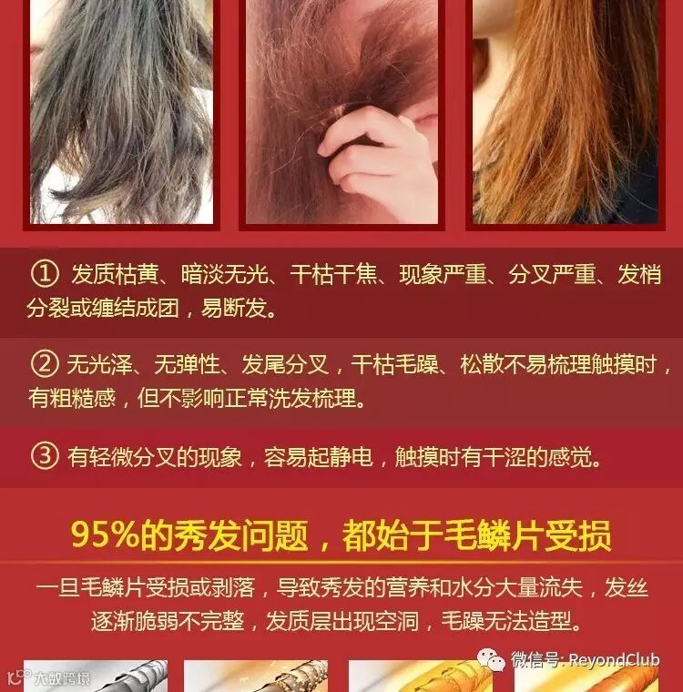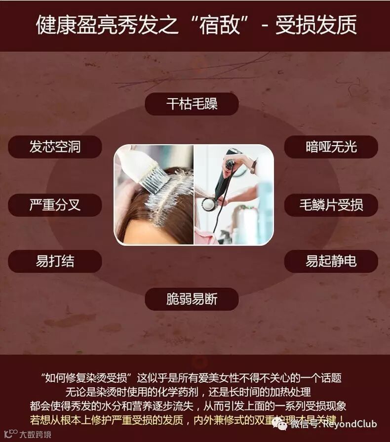 推荐给烫发和染发损伤发质,头发松散难以打理,发梢干枯,分叉,希望改善受损发质,恢复秀发健康的顾客使用。