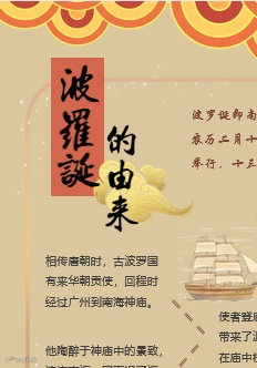 波罗诞,已延续千年的广州海洋文化的民间盛会,蕴涵了广州最有代表性的民俗文化元素。其广泛而强大的参与性与亲民性,让波罗诞如今仍焕发出强大的生命力。