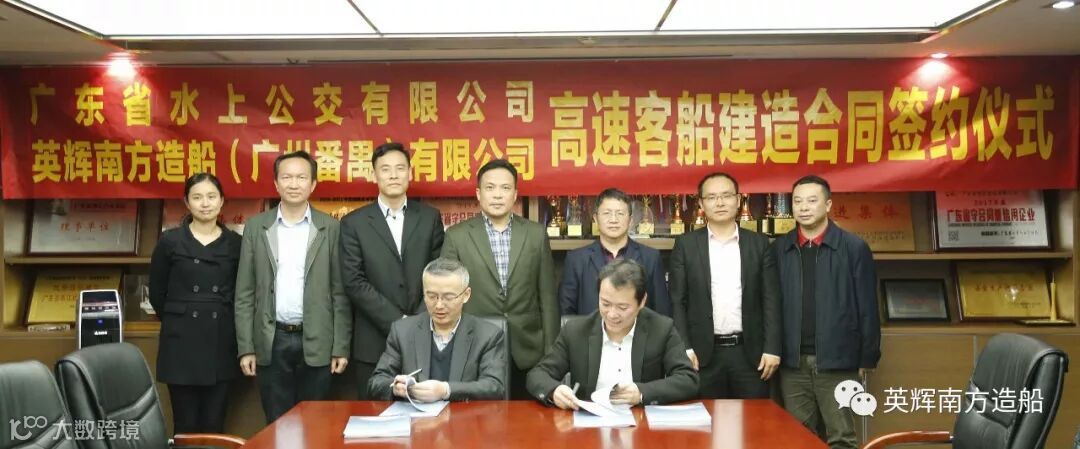 签约仪式在省航运大厦隆重举行,在广东省航运集团副总经理张道武及广东省水上公交有限公司董事长罗健的共同见证下,广东省水上公交有限公司总经理陈宇及英辉南方总经理陈晓亮共同签署了设计建造合同。