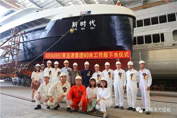 2018年8月28日12:08,英辉南方为青岛港(集团)有限公司建造的单体铝合金高速船“新时代”顺利下水。
