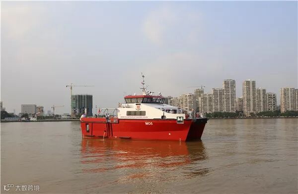 “MO5船、“入级BV,船长26米,型宽11米,最大吃水3米,可抗浪高4.5米,甲板最大可载货72吨,设计航速24节,试航航速达25节,双机双桨推进,并配备艏侧推、拦截机等多个专业设备,其船型特点、航态性能及建造质量均达到国内一流水平。交付后”MO5“将在英国北海高海况风电场运营。