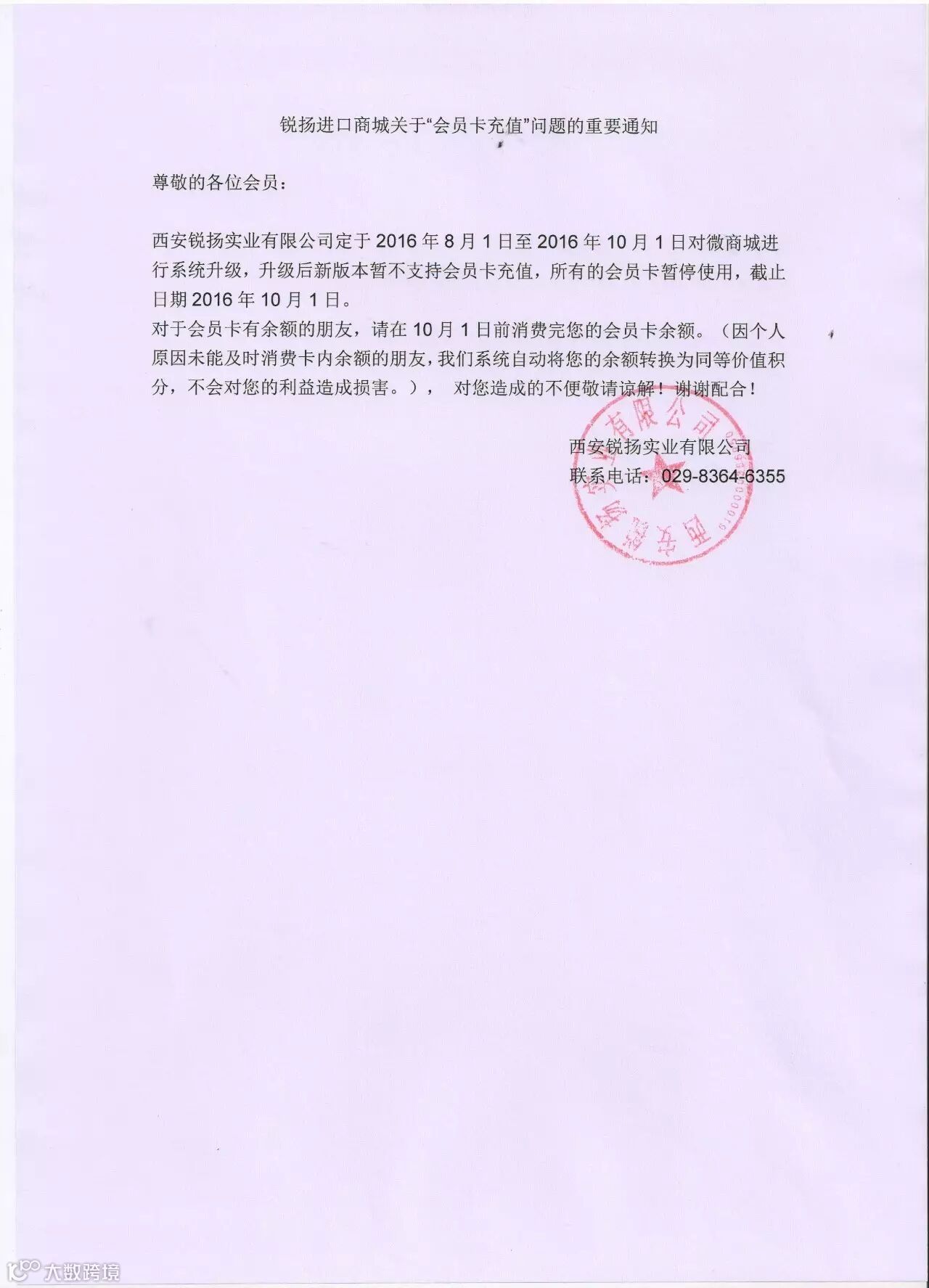 锐扬进口商城锐扬进口商城关于“会员卡充值”问题的重要通知