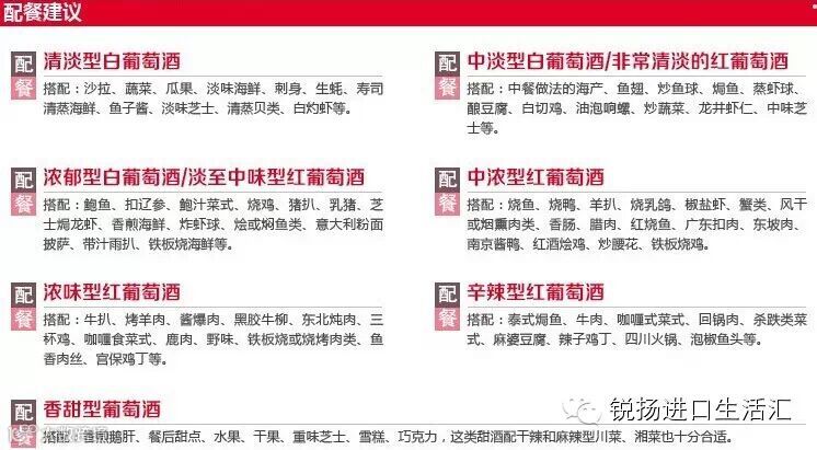 葡萄品种、葡萄酒名称、收成年份、等级、产区、装瓶者、酒厂名、产酒国名、净含量、酒精浓度。