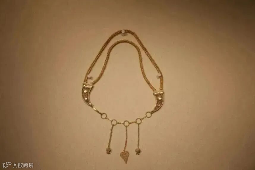 南宋金双重顶链犀角形 牌饰项链 |