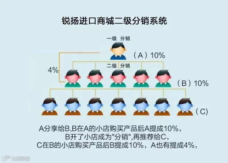 二级分销系统,一级佣金是10%,二级是4%;
