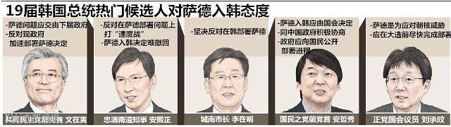 如今朴槿惠时代已经结束,韩国须在60天内举行大选,选出新总统。新继任者是否会放弃萨德的部署自然而然成为了韩国经济的命运拐弯点。我们先来看看19届总统热门候选人对萨德入韩态度↓
