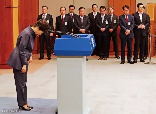 12月9日,韩国总统朴槿惠接到国会送来的弹劾决议后,即刻停止行使总统权限。