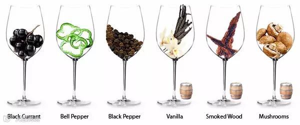 如果葡萄树体年轻,酿造之酒则存在更多的“黑樱桃”、“李子”的香气;而“黑醋栗”香气是识别世界各地赤霞珠的典型香气。
