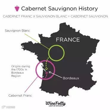 1996年美国加州大学戴维斯(DAVIS)分校的植物遗传学家 Carole Meredith 通过 DNA 分析表明:赤霞珠葡萄是由品丽珠与长相思在600年前的杂交而成。
