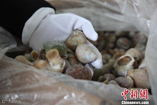 中新网广州1月6日电 黄埔海关6日通报称,该海关5日凌晨成功开展代号为“破冰Ⅱ”的打击海产品走私专项行动,一举打掉7个活跃在广东、北京、等地的走私犯罪团伙,抓获犯罪嫌疑人20名,案值约人民币5.96亿元,现场查扣各类冻海产品约8吨。