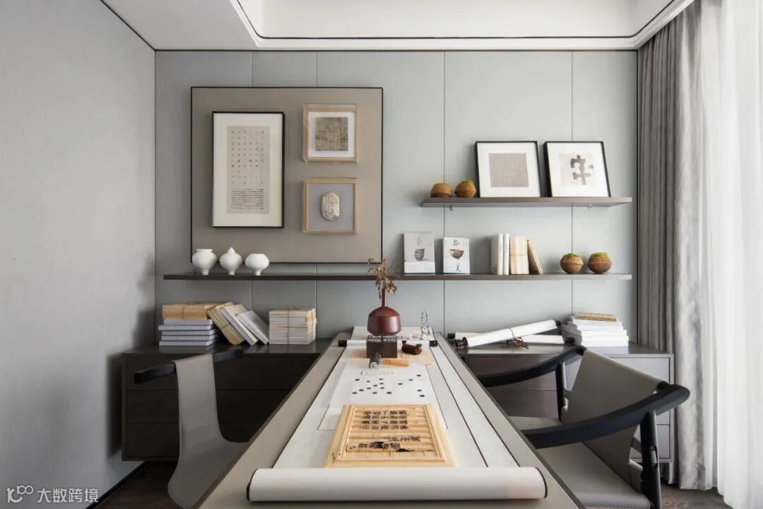 古典的珍藏唤起时代的印记,书房更像一个私家典藏馆,嗅着原木散发的自然清香,午后的一束暖光,晃眼间仿佛拉着你到达了宋朝文艺高峰的年代。