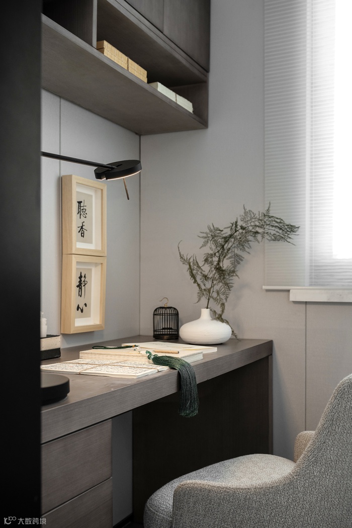 小小的多功能房,是男主人沉迷传统文化的私属空间,阅史书、览诗画,品一展飘香茗茶,别有一番闲情逸致。